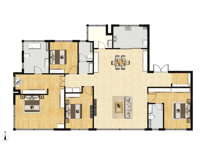 套内三代同堂根本不用想,孩子多几个都很局促,孩子只是住上略大的卧室,但还是朝北