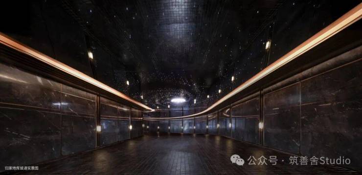 7米双车道,坡道出入口采用石材墙面与劳斯莱斯星空顶,搭配灯光跟随系统,星幕随车辆行进铺就尊崇归家路。每户光厅独特的紫山水大理石恢弘大气,入口旁设计私家万物仓,配司机休息室;车道地面无机磨石地坪,立柱采用岩板外包,世界豪车的展览殿堂。