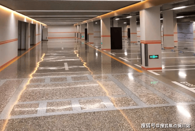 地下车库铝格栅吊顶,彩石地坪,品质感拉满,这种地面虽然造价更高,但比普通的环氧地坪更经久耐用、行驶更安全,而且容易清洁,安全性更高。