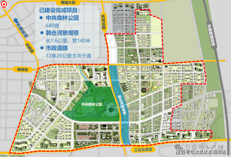 其中沿河地块容积率在1.3,纯低密规划板块,并且拥有面积相当于泉城公园的济钢中央森林公园,公园绿化率达到86.63%,已然成为东城的城市绿肺,再叠加韩仓河景观带加持,板块生态资源处于整个东城最优配置。