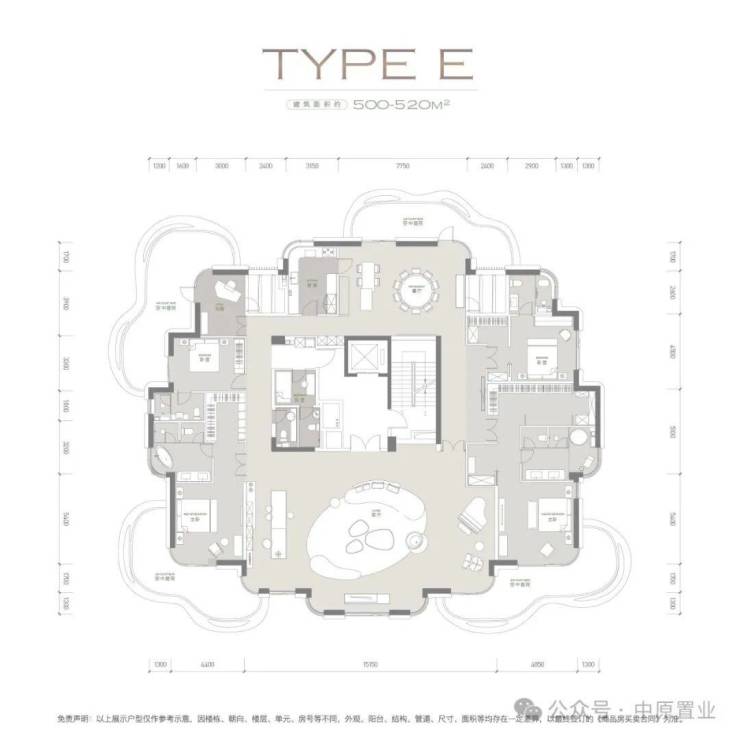 ①220-230㎡、②230-250㎡、③300-325㎡、④500-520㎡毛坯交付