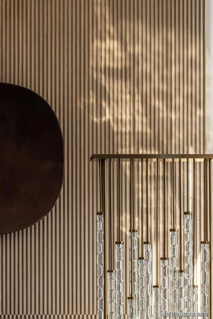 山岚静伫不语,流水无声蜿蜒,天花脉络拟作山水循环的意态,伴光而生涟漪万象,自然与艺术相融的虚实之美弥漫于整个空间。