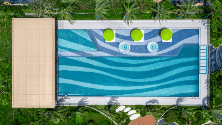 最令我感到惊艳的是凤鸣江南的泳池。在绿城管理的园区里,泳池早已超越了其作为游泳设施的基本功能,它是绿城管理品质布局的源泉,是景观美学的集大成者,更是美好生活的生动象征。