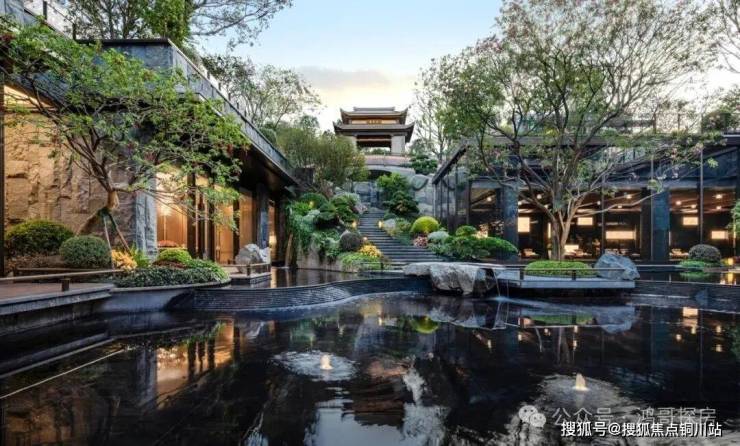 还原厦门“文公书院”魁星阁,寓意魁星点斗,由景德镇老匠人手工手工锻造的龙鳞金瓦桥,和岛内最大6米高瀑布中庭交融,寓意鱼跃龙门之势;