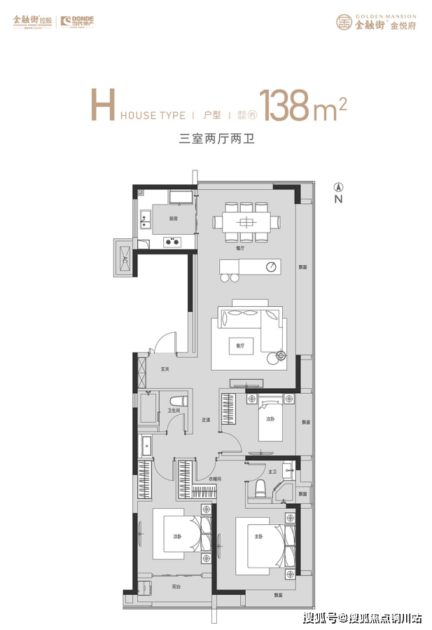 再如138㎡的三房为边户,采用独立电梯厅入户,提高私密性及尊贵感;全房光照,转角飘窗,享受270°景观视野;客餐厅6.3米阔绰横厅,空间宽敞又实用。