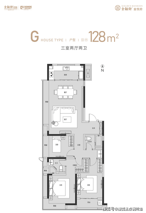 约128㎡户型,规划三房两卫,室内明亮通风,自带4个飘窗,可拓展面积多,有效提高空间利用率;做到动静分区,干湿分离,给家人更多贴心呵护。