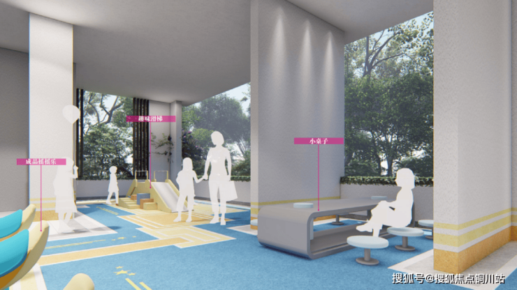 考虑到业主个人休闲、亲子互动、锻炼等多元化的社交需求,小区内部还打造了儿童游玩区、运动健身区等架空层空间,无论晴天雨天,家庭的每个成员都可在这里找到属于自己的活动空间。