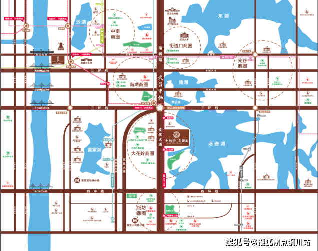 想要逛吃,项目周边有大花岭商圈。也可自驾一路往北约4.6km到达三环,前往汉阳、光谷,也可继续往北上珞狮南路到达武昌核心,规划中两湖隧道快速路直通秦园路到汉口。