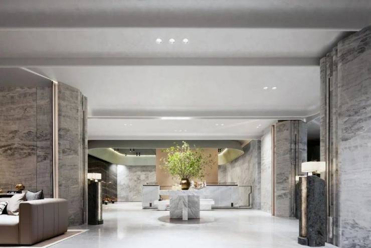 LOW-E 玻璃的应用,不仅实现了高效的隔热保温功能,还赋予了建筑外观更加透明与璀璨的外观,如同一面映射四周景色的巨大镜面。米白色一体化板材的巧妙融合,恰到好处地平衡了整体色调的冷硬,营造出温暖而柔和的视觉体验,使建筑外观既显高端奢华,又不失亲和与和谐,成为城市中一道引人注目的风景。