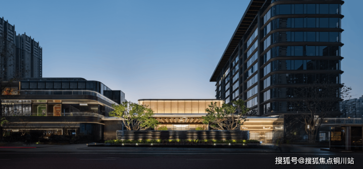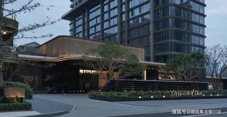 项目入口处打造酒店式落客流线,入口处约8米悬挑雨篷提升了门庭前场的气势,展现了高门大户的尊贵气度。