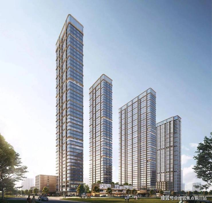 外立面采用香槟金铝板搭配270°弧形转角玻璃幕墙, 突破超高层住宅锐利直角的传统做法,且所有玻璃幕墙拐角处都做出弧度,打造少有的全景舱视野不仅赋予建筑以通透灵动的气质,更让每一道光线流畅穿梭,勾勒出无与伦比的流线美感。