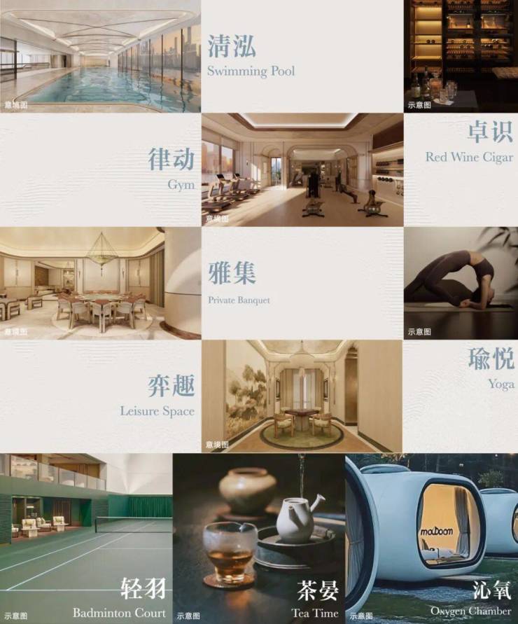 扭转普遍的平面思维,将恒温泳池、健身房、微压氧舱等健康活力场景,融入到会所体系,以超星酒店般的品位,诠释生活的尊奢。