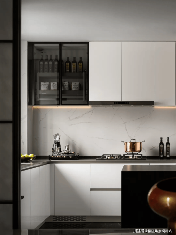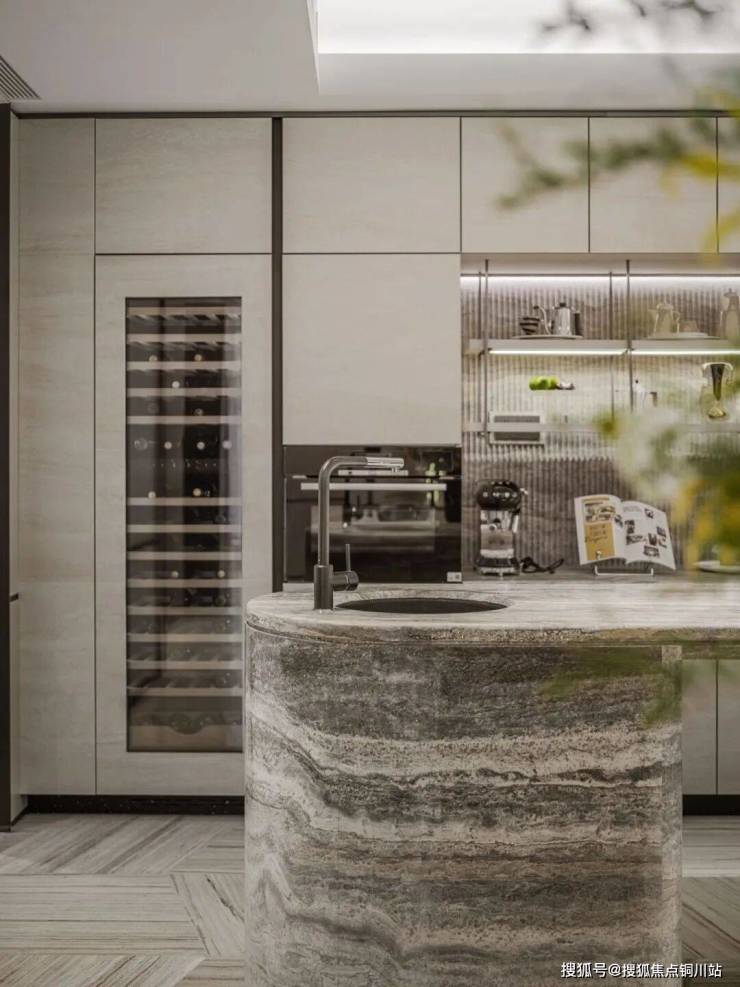 履迹全球,千臻万选,大量运用云中翡翠、云水谣的奢石,开创性使用罗马拿铁洞石岛台、整面白沙石沙发背景墙、高定岩板西厨柜、枫影木等稀贵建材,重塑生活的舒适与优雅。