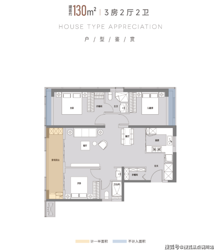 ②约10㎡景观阳台,再加上3个卧室飘窗,可优化面积较多