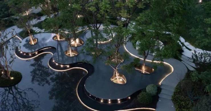 项目的低密建筑形态,将更多空间让位于自然,营造楼下度假的空间氛围,游园式空间体验,归家私密性高。风景交错的社区内,人均拥有更多的绿意,成为高知人群的理想栖居之境。