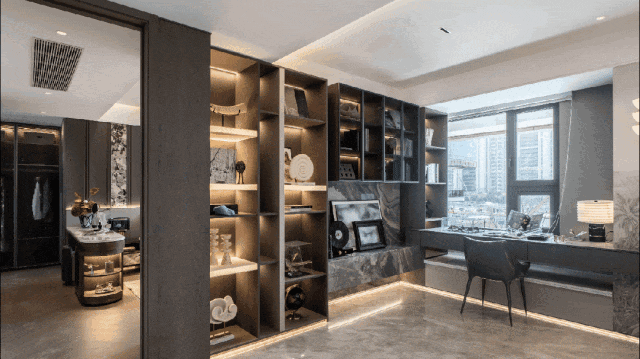 行政主卧套房以双洄游动线串联衣帽间、景观卫浴,于细节处诠释从容悦己的生活哲学。