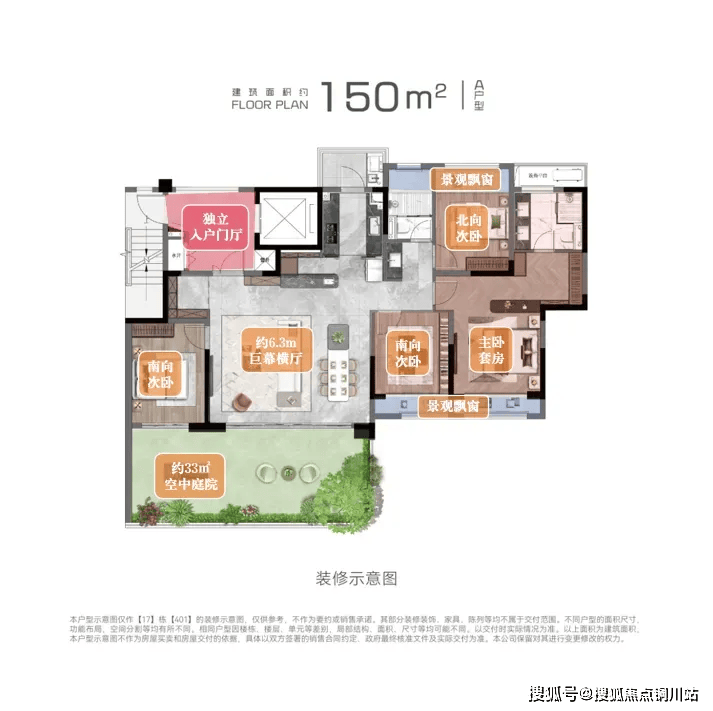 建面约150㎡的A户型:
