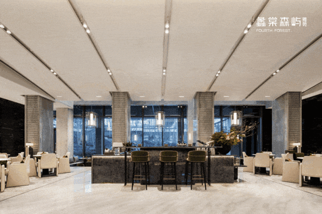 蠡棠森屿约2000㎡顶奢泳池会所+4000平泛会所,它们都不是孤立的,通过大面积落地窗设计,实现与室外景观的无界融合。