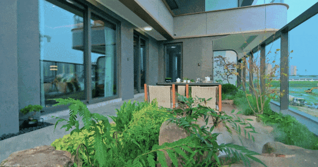 约46㎡转角庭院,实现风、光、绿植的三维共生,让平层也能拥揽星空入怀;
