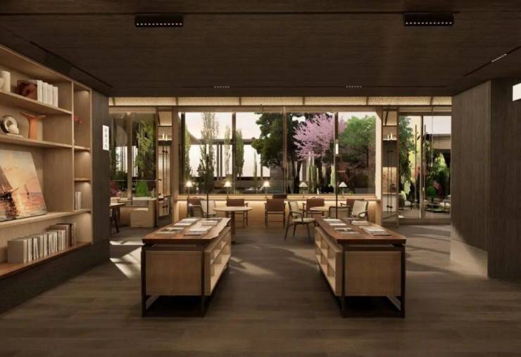 所以,会客盒子涵盖中央庭院、艺术走廊、水吧区、会客厅,功能性早已超出普通的接待功能,主客两便。