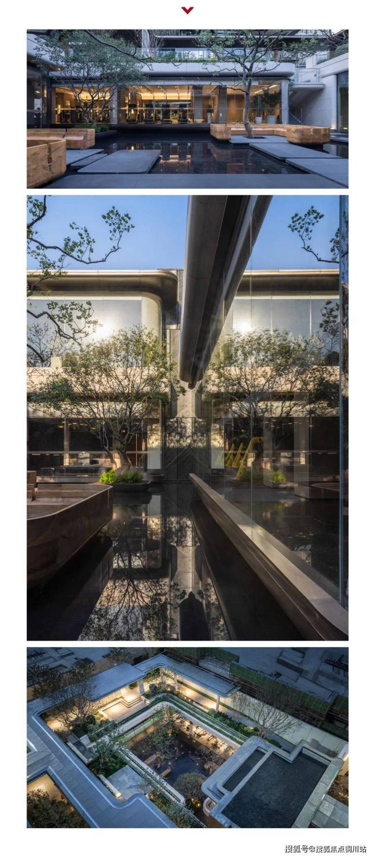 下沉会所采用洄游式空间序列,递进的院落式设计强化归家仪式感。
