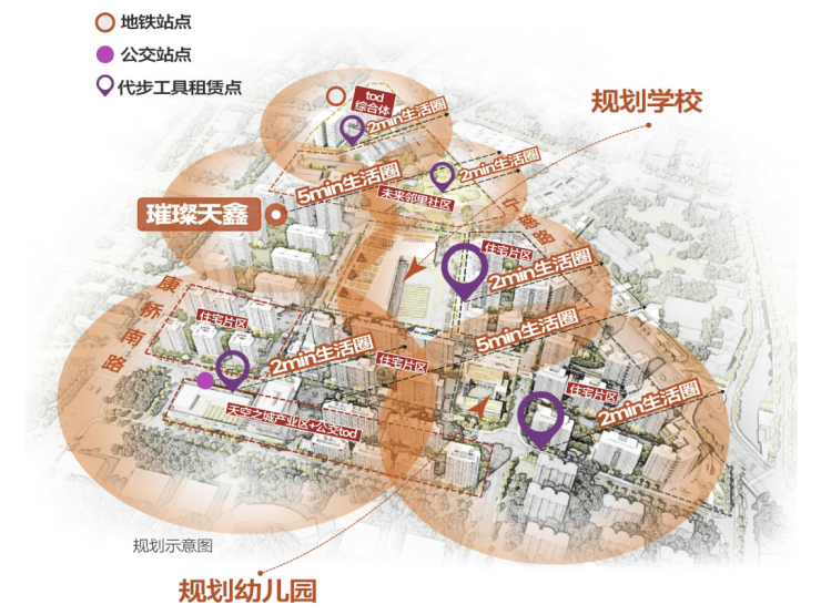 进阶的不只是TOD未来场景,项目在空间、品质与服务等维度也进行了全面升级。未来负一层地库将与净菜超市实现无缝连通,形成Urban TOD(地铁+商业)无缝衔接模式;园林景观上做了升级,打造了沉浸式的三大地面艺术景观慢行系统;在公区和架空层也陆续升级,打造更多生活场景。