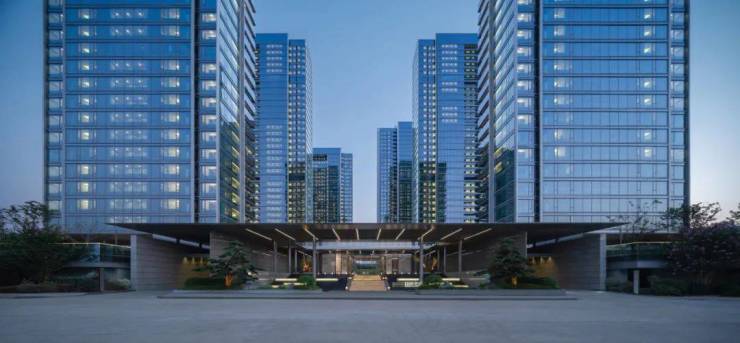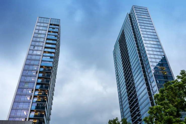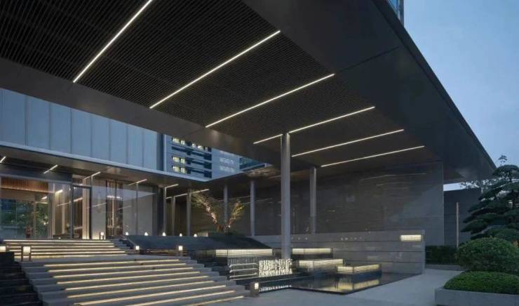 大面积的玻璃幕墙,搭配银色铝板,一圈圈勾勒出建筑的线条,金属灰点缀其中,建筑一体两面、各有千秋。