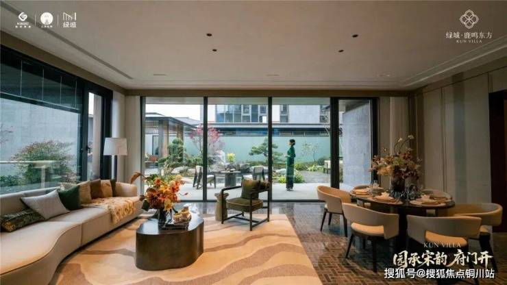 在细节上,绿城又开创性地首次重构了苏工技艺的精妙:比如结合宋式山水画屏与昆玉精雕的“白玉画屏”;比如以铝合金材料转译还原绞角造、榫卯及望柱等元素的“寻杖勾栏”;又比如绿城首次取形昆山市花琼花融合并蒂莲元素打造的“金镂格栅”,这些技艺不但代表着宋式美学“百事精微”的精神,更透露出绿城对产品细节的偏执。
