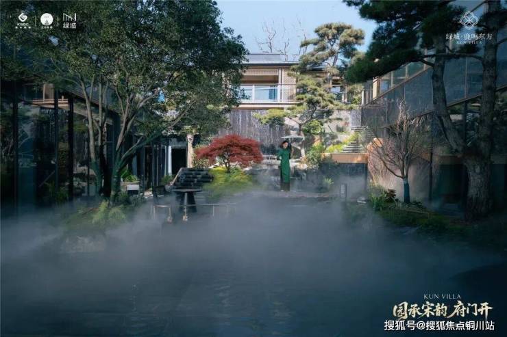项目通过打造昆山首座下沉式宋风美学庭院,构建起双层洄游动线系统。绿城凭借6米高差的立体庭院布局,塑造出一幅可游可观的现代山水画卷。绿城设计团队取法昆山亭林公园,以自然高差为画布,用画笔把山、水、石、树等元素取用融合,结合池、泉、瀑、溪的立体多维水景系统,勾勒出城市里难得一见的自然式山水立体庭院。