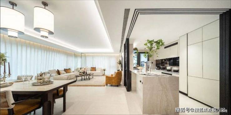 社区入口设计有发光水幕社区大堂,5-6米高奢石幕墙与动态水幕相结合,致力打造和平大道上的美学新地标。