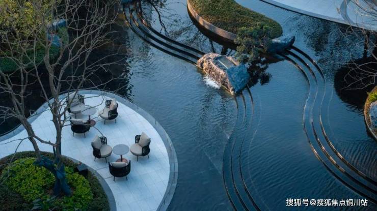 项目内部,得益于约1.35超低密,引水入园,设计出约550㎡水景面积,加上“一环两轴多点”的景观结构,全地形微气候生态模拟景观,与岛尖公园里的景观打造几乎融为了一体。