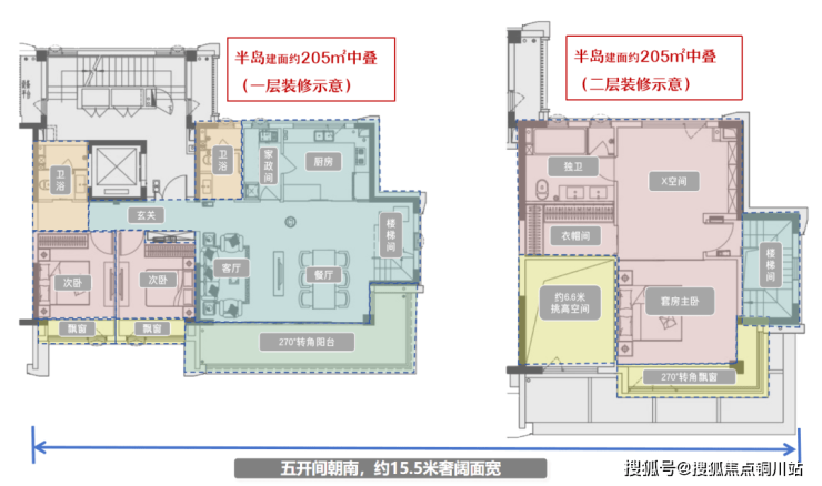而半岛叠墅,在常规叠墅上下分境、动静分离的基础上,做了进一步创新,朝南五面宽,大开大合之间,把叠墅该有的大气凸显了出来,真正做到了:别墅的居住感,大平层的宽境感。