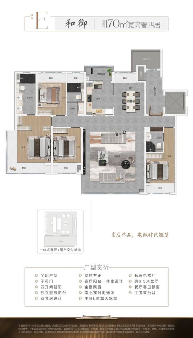 项目更以“功能升维”思维打造全生命周期适配体系——120㎡以上户型标配独立家政阳台与真南北穿堂风设计,剥离杂乱干扰,北向通风区精准调控空气品质;6米宽厅承载家庭社交主场,动静分区兼顾私密与互动需求,灵活可变空间满足多代际居住演变。
