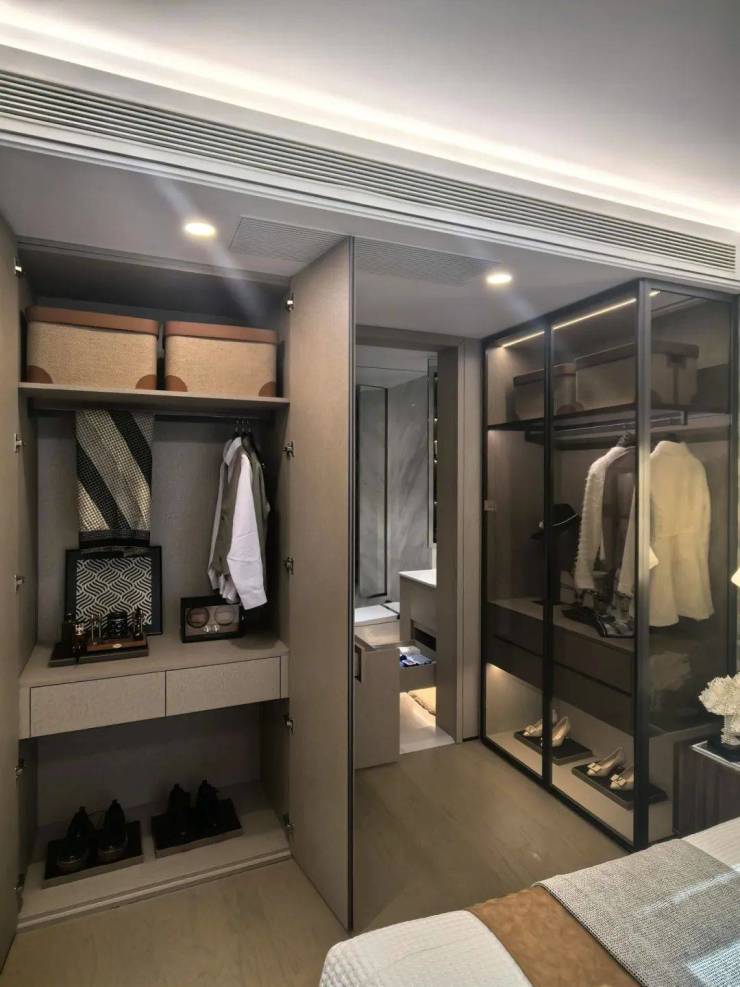 主卧收纳:89㎡小户型,也能拥有衣帽间,东山金茂晓棠89㎡户型,主卧竟然有两组大衣柜(后期都木门交付)!
