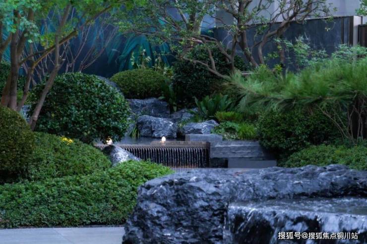穿过门楼转入花园,景观置石与植物组团之间的穿插咬合为归家花园谱写了开篇。植物优雅伸展着枝丫述说着时光的故事,潺潺叠水让此静谧空间鲜活起来。在自然与艺术共存的空间里,找到无可复制的专属惬意时刻,创造一种富有格调的艺术生活场景。