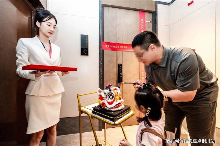 在业主收房时每户都有专属印章,由客服掌灯带着业主和验方团队入户,剪彩进门前,还有对瑞兽“画龙点睛”的仪式,寓意开启新家好彩头。