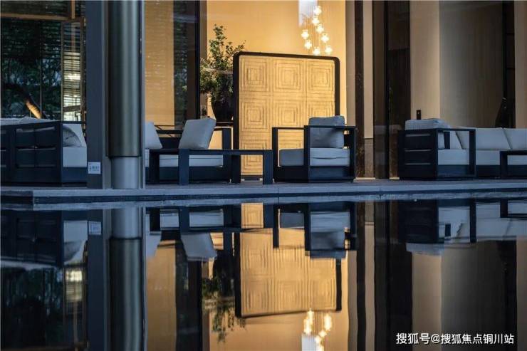 摩尔会客厅中的休息沙发,是单价15万的深圳润玺社区的同款沙发,都是澳大利亚纯进口品牌,还有用真正的皇家白玉石材打造的皇家白玉地灯……整个景观归家动线尊贵而内敛、典雅又时尚,营造出高级的奢适度假风。