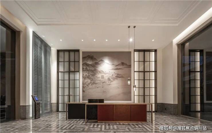 比如大堂内用瑞符拼接的石材地砖、故宫老师傅手工壁画、软装灯具、大堂外的龙鳞墙、电梯厅门,以及随处可见的门把手、园林的路灯与监控的集成杆、定制的地漏、石材排水槽等,哪怕是户内的开关面板也都是定制。
