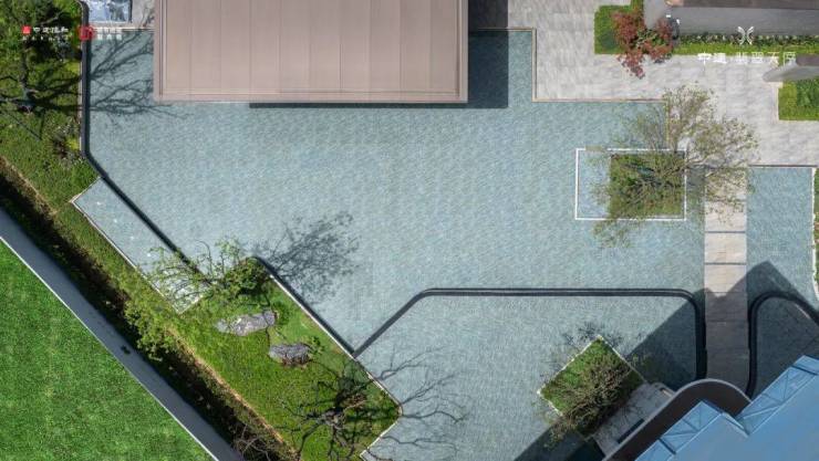 约500㎡的度假水庭+底部蓝绿色石材,水波荡漾,犹如蓝色果冻海。