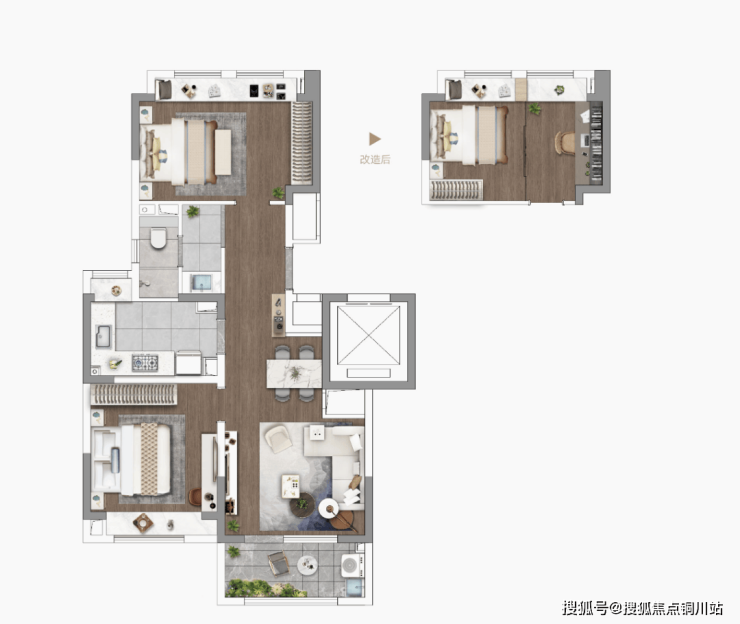 建面约105㎡3房2厅2卫: