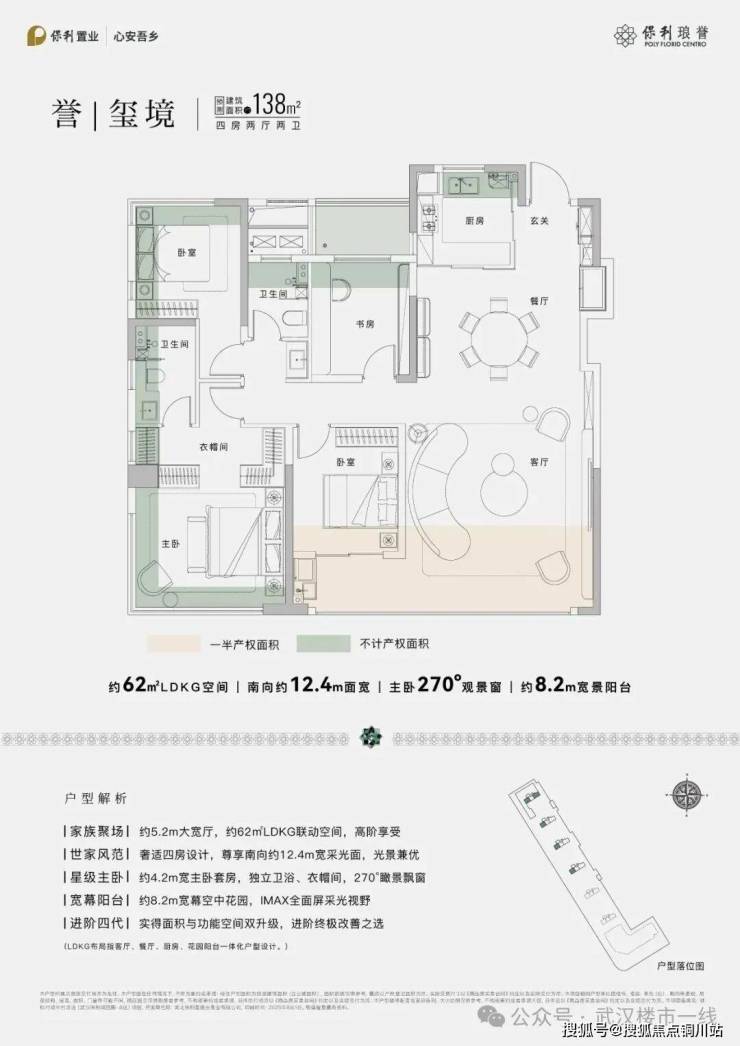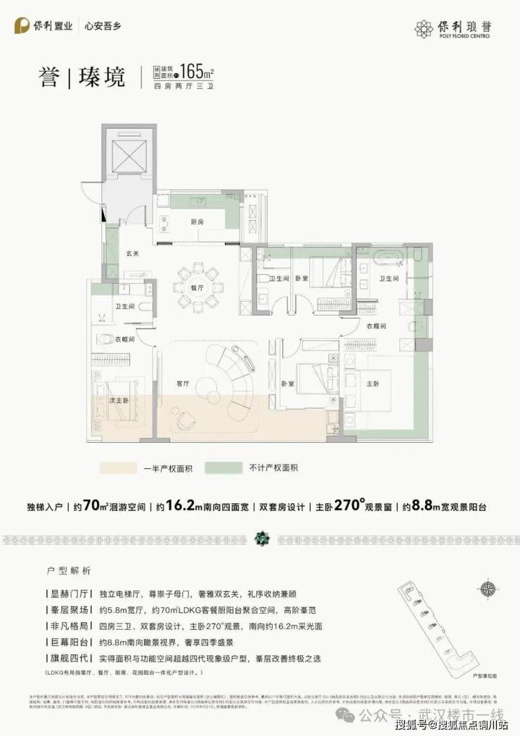 建面约165平的大四房就更牛了,专梯专户+超16米南向大开间+超70平超级动区+双主卧套房,处处都是奢宅大平层的排面。