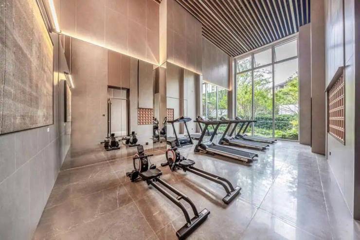 全景落地窗的会客厅,把绿意和阳光都装进了诗意时光。现代化健身房内,器械精准捕捉每一次发力的韵律,运动正治愈着心灵。踏入读书室,浓郁书香扑面而来,坐下翻阅书籍,也不失为一种夏日的惬意。