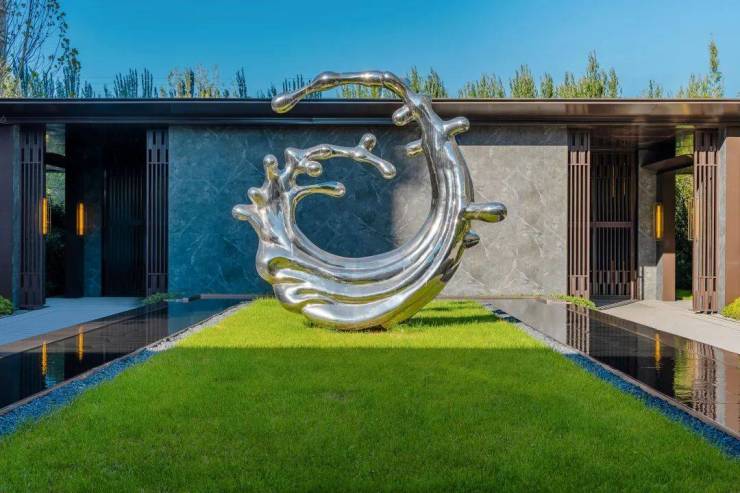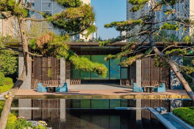 一府藏晋,园林联袂知名设计团队DDON笛东,以“汾河水脉”为主题,从太行灵感的山石照壁,王家大院的房檐起伏到应县木塔的建筑风格,创建出意境大不同的东方美学园林,重拾三晋建筑深邃精髓,复刻三晋大院沉淀百年的文化底蕴。