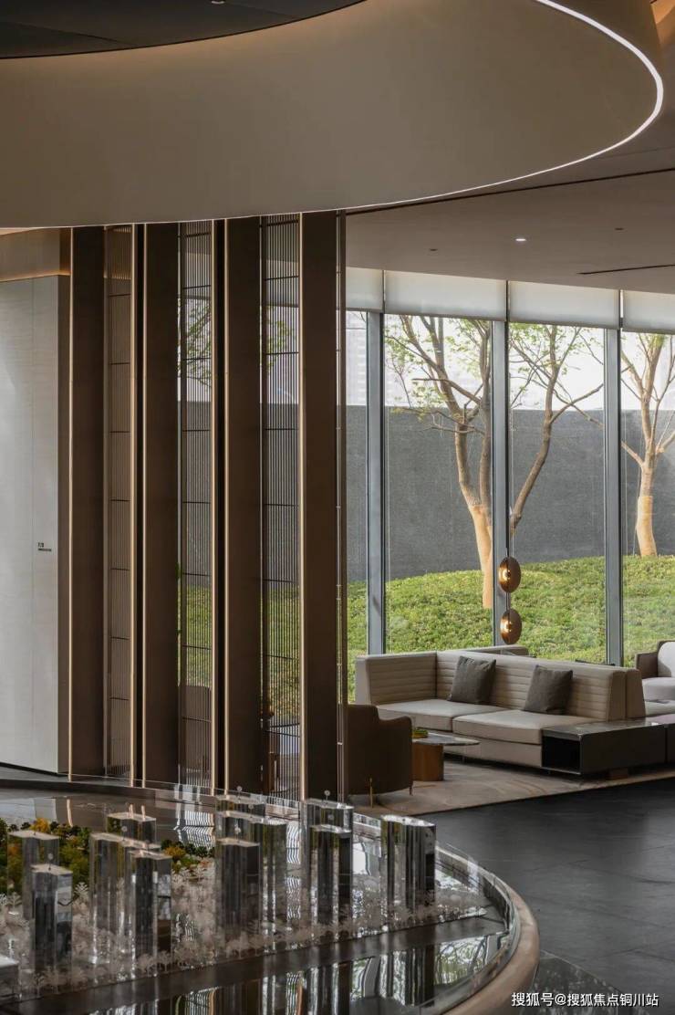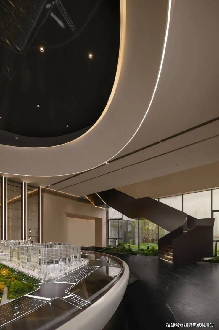 一座盘旋而上的旋转楼梯,抽离山间中的溪流和脉络,通过光影交错的丰富变化,使视线在纵向空间停留延展,融于整个空间之中。再由形体、线条、色彩的形式组合或结构来表现,为空间带来恰如其当上的视觉张力。