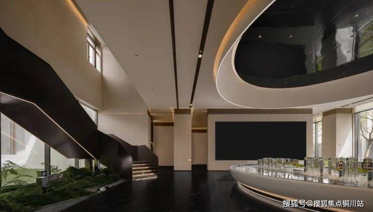 接待区到沙盘区之间,以一段步行廊道相连接。身处于此,来访者可以摒弃外界的干扰,思考自我,完成与城市的对话。站在空间中心处,以沙盘、艺术楼梯爲核心。可以向左右张望,让游者自然的就顺著光和景观,愉悦地徜徉其中。