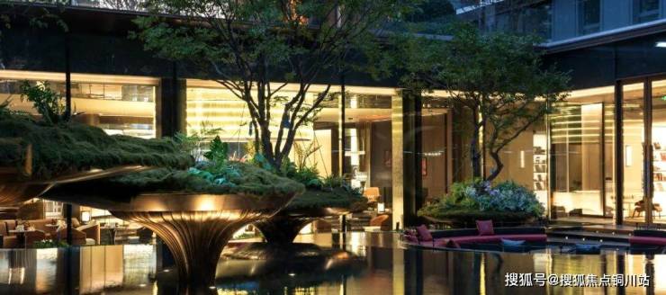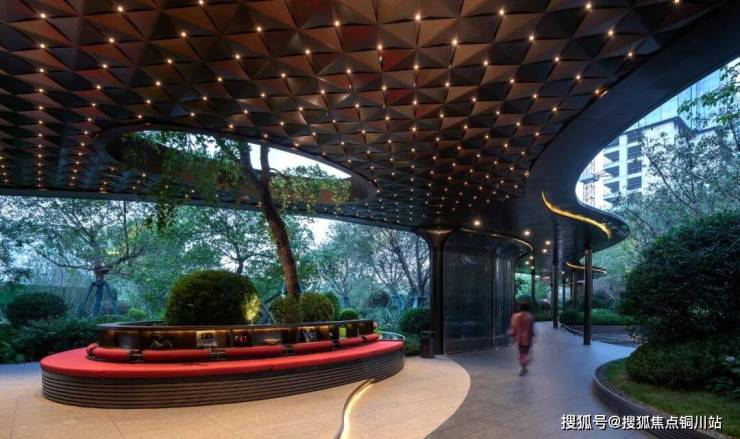 空间不惜造价采用古时达官贵人争相追求的珍宝琉璃,创造成联动立体花园的艺术景墙。红色钻石切面折射一园璀璨光,成为下沉庭院的吸睛焦点。精益求精不为进度妥协,琉璃景墙直至二批次开放前才将整体品质呈现。
