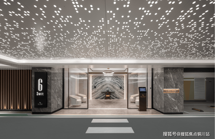 楼栋入户大堂是业主地面归家的必经之地,项目也同样采用了相当精致且高标的设计。