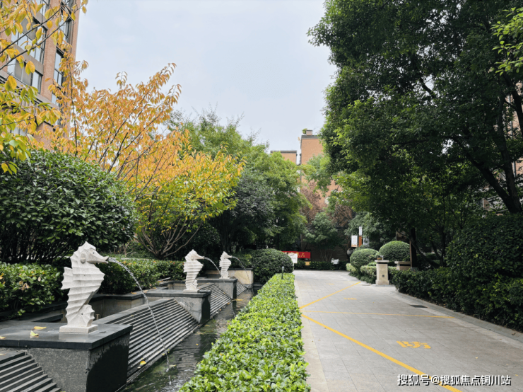 刚进入小区,可以看到喷水景观、遮天蔽日的林荫大道。出乎我意外的是,喷水景观在非节假日还在运作,要知道很多小区刚开始宣传有水景,交付后为了节省成本,都只在重大节日开放。
