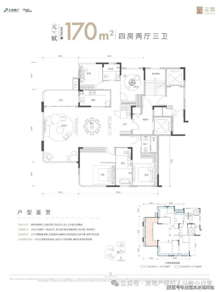 项目推出127㎡、142㎡、170㎡三种户型,均采用双套房+多面宽+双阳台+全落地窗设计: