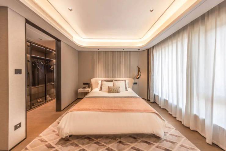 超35㎡酒店式主卧套房,配置约9平玻璃橱窗式衣帽间,四分离式奢华主卫,让每一天的起居都充满仪式感。